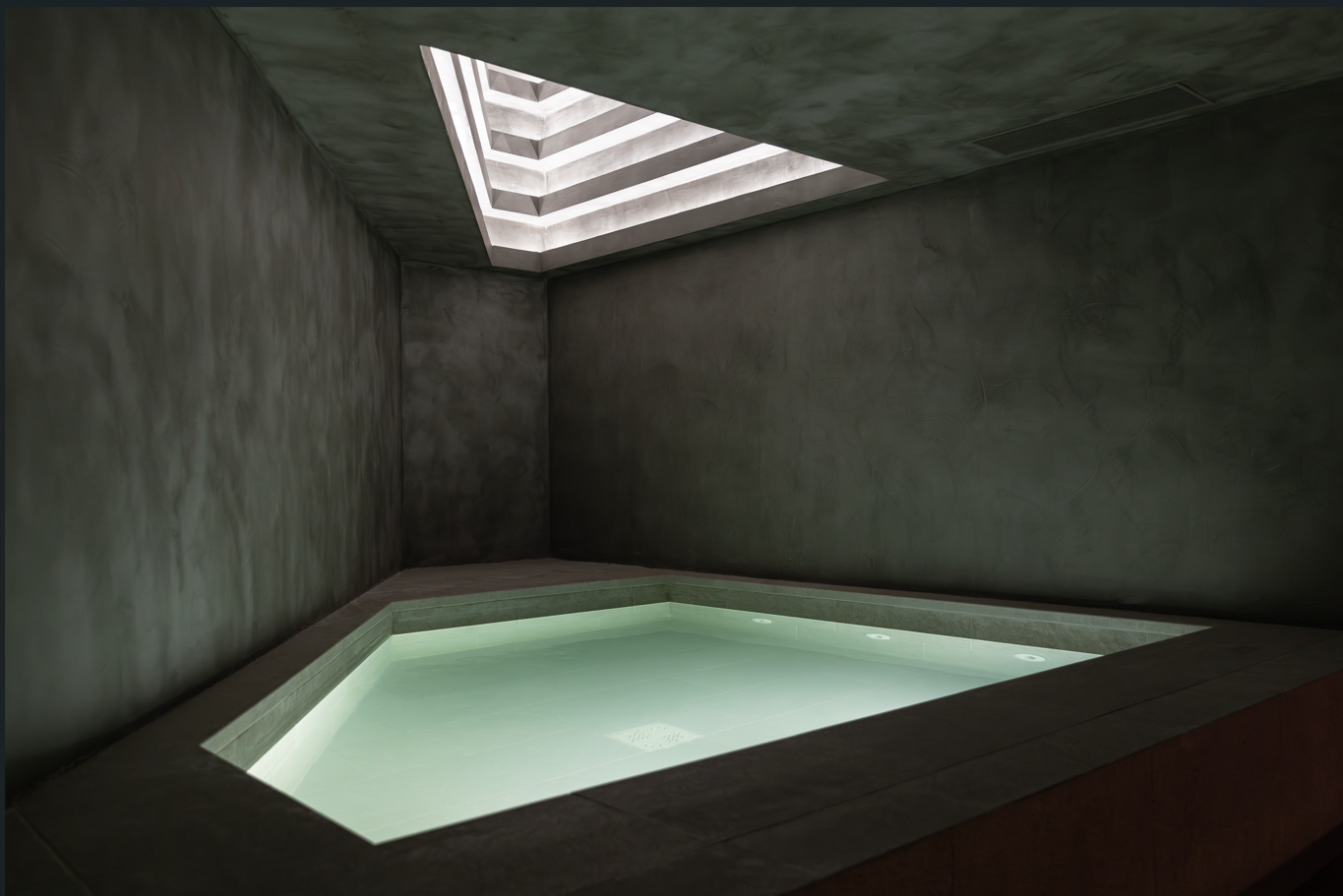 Heated pools, cold-water pool, hot-water pool, sauna, hammam, infrared area, and relaxation zone.