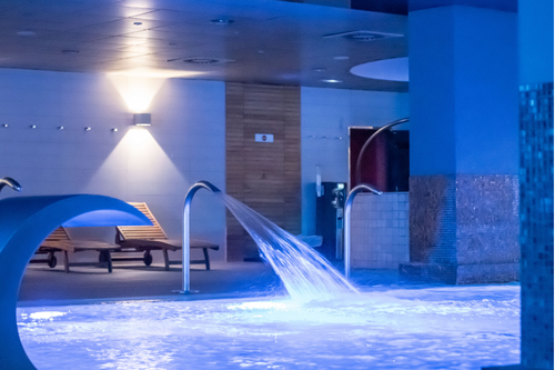 O spa está equipado com 1.500 metros quadrados de água, 4 jacuzzis com jactos pressurizados, banho turco, sauna finlandesa e água aromatizada.