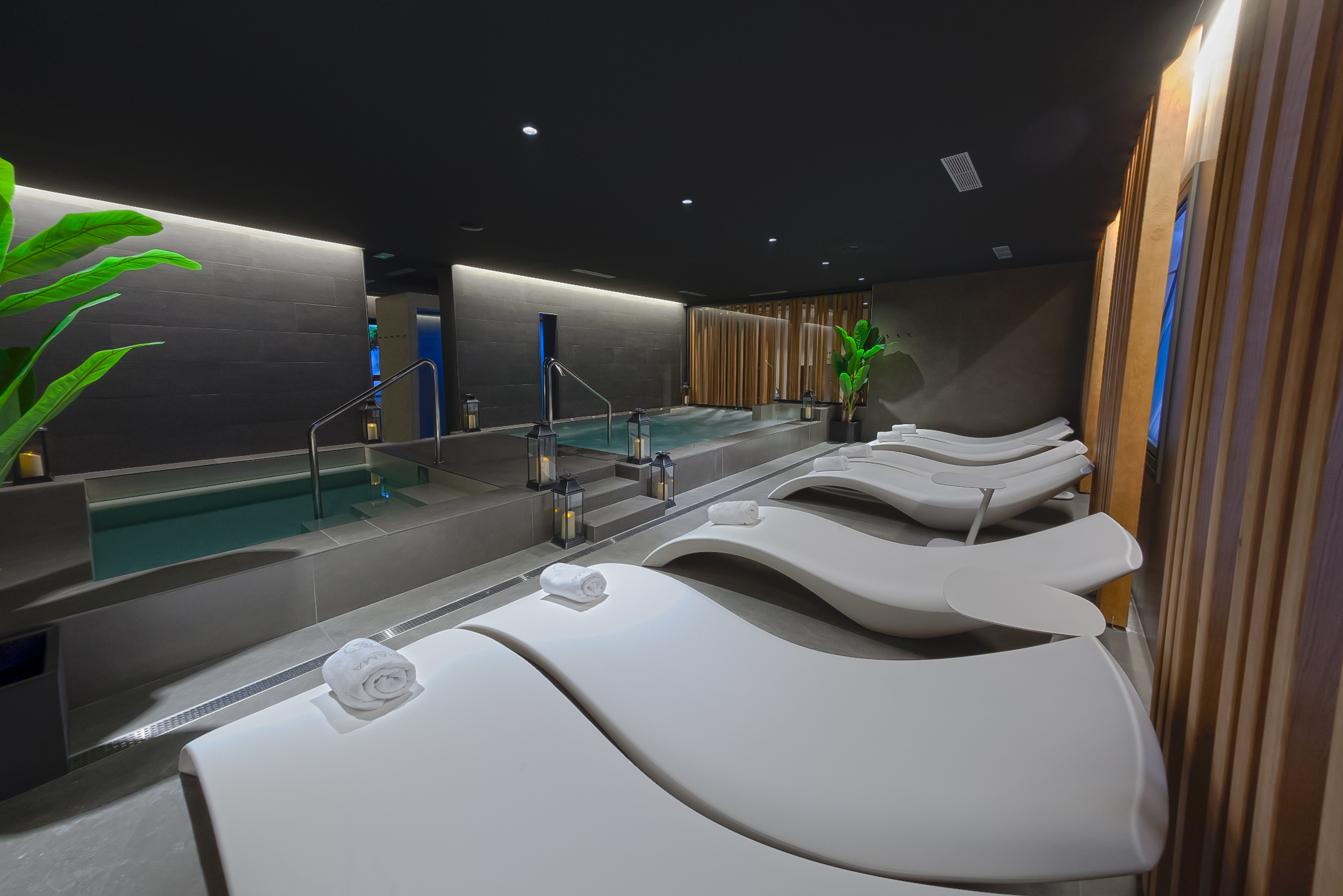 As suas modernas instalações têm tudo o que precisa: duas áreas de água quente e fria com jacuzzi, sauna e banho de vapor, uma cabine de massagem dupla para desfrutar de massagens, rituais, tratamentos e uma área de relaxamento com um banco quente com máquina de chá e água.