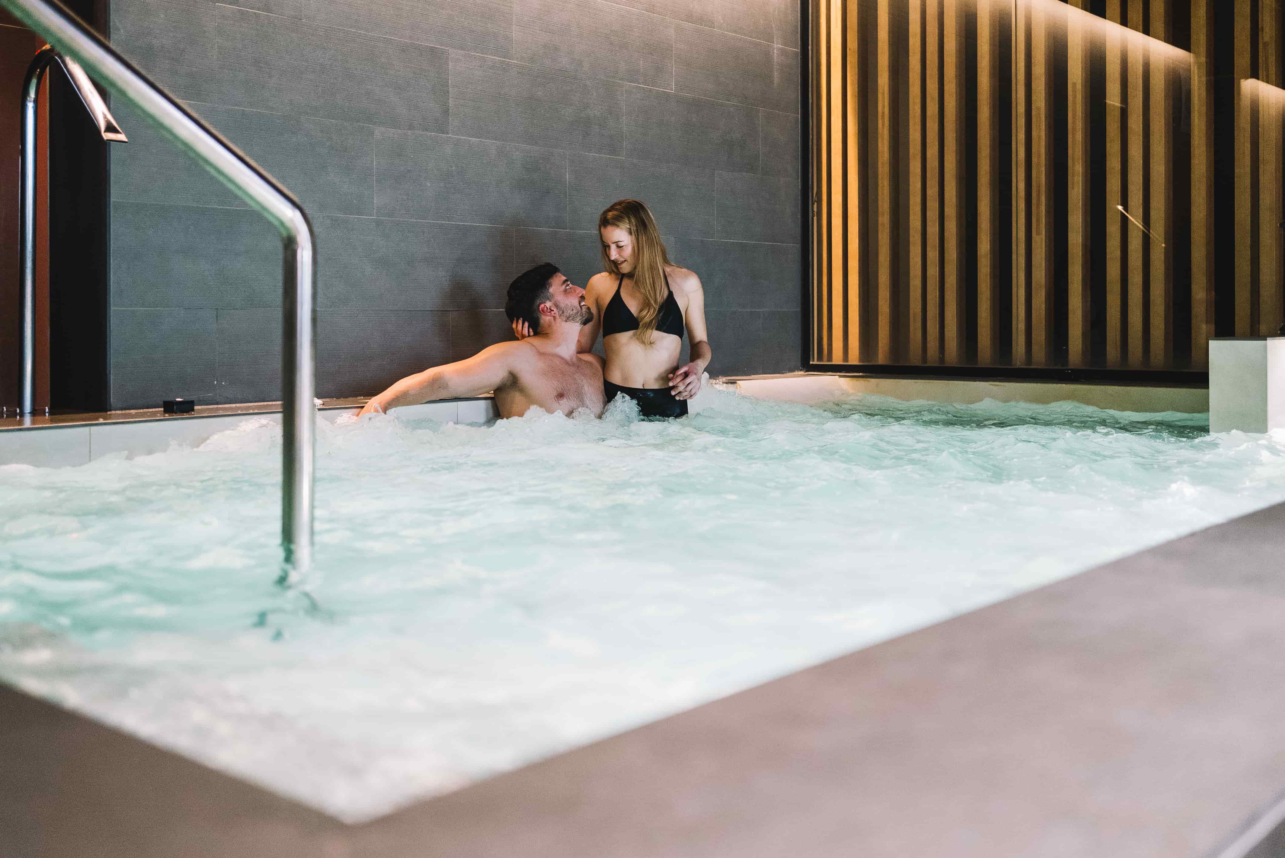Spa privado com circuito de águas para um máximo de 8 pessoas, com um copo de cava e uma taça de fruta da época por pessoa.